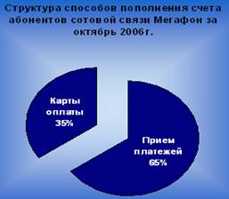 Рисунок 8. Структура способов пополнения счета абонентов сотовой связи Мегафон за октябрь 2006г.