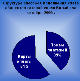 Рисунок 6. Структура способов пополнения счета абонентов сети Билайн за октябрь 2006г.