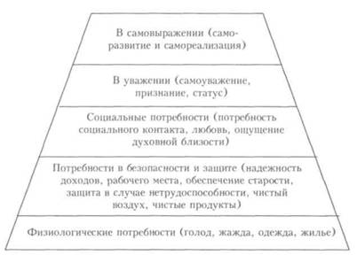 развития производства и благосостояния общества, становится предметом Западные ученые большое значение уделяют градации потребностей по степени их неотложности. Так, А. Маслоу предложил иерархию потребностей в соответствии с их весомостью (рис. 8).