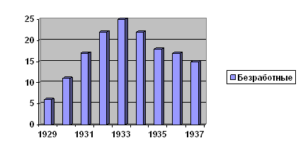 Безработица в США (ось х – годы, ось у – процент безработных).Развитие рода отраслей экономики главных капиталистических стран в 1920 – 1935 гг.