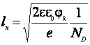 де ε – відносна діелектрична проникність матеріалу напівпровідника; ε0 — діелектрична постійна вільного простору. Товщина електронно-діркових переходів має порядок (0,1-10)мкм.