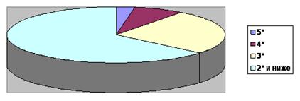 Рис. 2.1 – Количество гостиниц в Санкт-Петербурге по критерию «звезд» Еще в прошлом году явно наметилась тенденция к открытию отелей в пригородах Петербурга. В нынешнем году ее отражением является открытие в апреле 2009 г. 4* отеля на 48 номеров при яхт-клубе «Терийоки», помимо которого также были построены SPA-комплекс и элитные коттеджи, сдаваемые в аренду. В самом Петербурге в первом квартале 2009 г. были открыты два отеля: «Holiday Inn Московские ворота» на 557 номеров и «Москва-2» на 90 номеров. Среди наиболее значимых открытий, намеченных на 2009 г. – Park Inn (оператор Rezidor, 246 номеров) и новый корпус отеля Corinthia на 105 номеров, расположенный на Невском проспекте. В целом необходимо сказать, что начало 2009 г., несмотря на кризис, характеризуется большим количеством новых гостиничных проектов. Так, в первом квартале текущего года было заявлено 13 новых проектов с общим объемом номерного фонда около 1000 номеров, основная часть которых - гостиницы 4*. Всего в 2009 г. планируется ввести в строй около 2000 номеров, вновь с преобладанием уровня 4*. Подобную активность, на мой взгляд, можно объяснить тем, что гостиничный рынок даже в условиях кризиса еще не достиг точки насыщения (в отличие от рынка, например, офисной недвижимости, где предложение существенно превышает спрос), что особенно касается гостиниц класса 3*, поэтому данный сегмент рынка недвижимости по-прежнему представляет интерес для тех, кто обладает сегодня достаточными финансовыми ресурсами. В первом квартале 2009 г. произошло существенное снижение спроса на рынке гостиничной недвижимости Петербурга. Загрузка отелей снизилась примерно на четверть. Гостиничный рынок Санкт-Петербурга по-прежнему подвержен влиянию сезонности: в высокий сезон (май-сентябрь) многие гостиницы заполнены почти полностью, в низкий загрузка не превышает 40-50%. Влияние мирового экономического кризиса на гостиничный рынок Петербурга привело к сокращению темпов роста спроса на размещение в гостиницах в 2008 г., в начале 2009 г. эти показатели приобрели знак минус и стали отрицательными. По мнениям экспертов рынка падение загрузки в первом квартале 2009 г. в среднем составило 20% (по другим данным показатель находится на уровне 30%). Так, например, если в открытых в Петербурге в прошлом году отелях Sokos с июня по декабрь 2008 г. загрузка составляла около 50-80% , то в январе 2009 г. она упала до 11-12%. По итогам 1 квартала 2009 г. средняя загрузка в отелях Петербурга составила порядка 30-35%, а прогнозируемая среднегодовая загрузка отелей может составить не более 45-50%. Анализировать структуру спроса или говорить о ее возможном изменении в 2009 г. пока еще рано. Основной поток групповых бронирований (туристических и корпоративных) традиционно приходится на высокий сезон, а основная масса туристов, приезжающих в Петербург в январе-марте - это индивидуальные туристы. Главным фактором, влияющим на ценообразование на рынке гостиничной недвижимости, является сезонность рынка. Однако сегодня влияние спада в экономике, не обошедшего стороной и рынок гостеприимства, на ценообразование в отелях оказывается значительно выше, чем влияние других факторов. Если сравнить показатели стоимости размещения в рублях, то по данным компании GVA Sawyer по сравнению с первым кварталом 2008 г. произошло лишь незначительное изменение стоимости. Однако ADR в долларах США значительно снизила