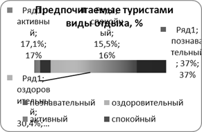 Диаграмма 2. Почему нравится отдыхать в пределах области Наиболее предпочитаемыми видами отдыха являются познавательный 37% и оздоровительный 30,4%, активно проводить свой отдых предпочитают 17,1%, спокойно отдыхать предпочитают 15,5% (см. Диаграмму 3).