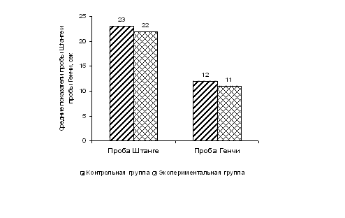 Диаграмма 4 – Средние показатели проб Штанге и Генчи в контрольной и экспериментальной группах январь 2008 года