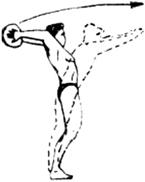 Рис. 10. Метание набивного мяча двумя руками сбоку