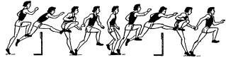 На финишной прямой чувство усталости, сопровождаемое натуживанием вызывает потерю темпа и длины шагов. Это требуетумения владеть собой, сохранять осанку, контролировать свободудвижений, что видно на циклограмме. Действия барьериста – это действия спринтера. Отличная подвижность в тазобедренных суставах, равновесие и свобода движений позволяют бегуну использовать максимальную скорость при переходе через барьер и в беге между барьерами.