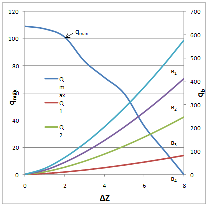 После несложных преобразований получаем формулу зависимости гидравлического радиуса от расхода и затем от требуемого объема переброски :
