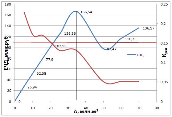 Под Амин понимается суммарное расчетное водопотребление, которое понимается, как базовая величина для дальнейшего развития отрасли. Определяем возможности максимального развития отрасли по объему Амакс.