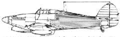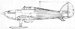 Разведчики "Харрикейн" никогда не был столь распространен в разведывательных частях, как "Спитфайр". Это и понятно - уж слишком велика разница в их летных данных. Однако , он внес свой вклад в воздушную разведку, особенно во время боевых действий в Северной Африке и Бирме. В декабре 1940 г. 208-я эскадрилья переоборудовала один из своих "Харрикейнов"I в тактический разведчик, установив перспективную фотокамеру в корне крыла. В июне 1941 г. 2-я фоторазведывательная часть в Гелиополисе (Египет) имела три машины в варианте дальнего высотного фоторазведчика. Первая из них была готова в мае: она представляла собой доработку "Харрикейна"I под стандарт IIА серии I, но без вооружения и с тремя фотоаппаратами в задней части. Такие самолеты получили обозначение РК.11. Они иногда вели съемку с высот более 10 000 м. Впоследствии переоборудовали подобным образом еще шесть истребителей. По крайней мере, один из них имел дополнительные крыльевые баки на 882 л в бывших отсеках вооружения. В августе 1942 г. эти машины сменились "Спитфайрами". Более распространенные ТасК II, встречавшиеся там же, в Северной Африке, имели неполное вооружение или совсем не имели такового, зато несли в фюзеляже две перспективные камеры. Использовавшиеся истребительными частями РК.11 соответствовали самолету 208-й эскадрильи. Они сохраняли все вооружение (по типу А, В или С), но получали фотоаппарат Р.24 в корне правого крыла. Всего в разные варианты разведчиков переделали около 200 "Харрикейнов" (не считая переделок в СССР). "Харрикейны" 2-й фоторазведывательной части активно действовали в Ливии в июне-июле 1942 г. и понесли значительные потери, 5-я (впоследствии 3-я) часть работала в Бирме. С октября 1942 г. и туда начали поступать "Спитфайры", а "Харрикейны" постепенно списываться. Зато на ТасК II в 1943-1944 годах летали 2-я и 6-я индийские эскадрильи; они тоже действовали в Бирме. Последние "Харрикейны"-разведчики применялись для съемки побережья Нормандии в мае 1944 г., но к "дню О" их уже вытеснили более современные машины. На Ближнем Востоке бывшие фоторазведчики стали использовать для срочной перевозки отснятых пленок с передовых площадок в глубокий тыл. Такие "курьеры" курсировали через Средиземное море по крайней мере до осени 1944 г. "Си Харрикейн" К началу Второй Мировой войны лучшим истребителем в британской морской авиации ("Флит эйр арм" РАА) являлся биплан "Си Гладиатор" со скоростью, не превышавшей 400 км/ ч. Он оказался совершенно несостоятельным против современных истребителей немцев. Ненамного лучше проявил себя в воздушных боях дальний истребитель-разведчик "Фульмар", созданный на базе бомбардировщика. Но нужды морской авиации в начале войны удовлетворялись в последнюю очередь. Все ресурсы поглощали ВВС, сперва действовавшие во Франции, а затем втянутые в грандиозную "битву за Англию". Для моряков в США заказали палубные истребители Грумман "Уайлдкэт", получившие в Великобритании название "Мартлет". Но эти машины начали прибывать лишь в конце 1940 г. После победного завершения "битвы за Англию" возможности британской авиапромышленности несколько возросли. Но на разработку нового отечественного морского истребителя рассчитывать было нечего. Лорд Бивербрук, министр авиапромышленности, железной рукой проводил политику сокращения количества типов самолетов, пытаясь таким путем поднять серийное про