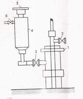Рис. 6 Принципиальная схема устройства ввода реагента в затрубное пространство по давлением: 1 – устьевая арматура, 2 – выкидная задвижка, 3 – задвижка затрубного пространства, 4 – резервуар для реагента, 5 – заглушка, 6 – вентиль. При этом способе подачи реагента обслуживание упрощается, но снижается эффективность действия реагента. 4. Охрана труда и противопожарная защита 4.1 Охрана труда и техника безопасности При эксплуатации скважин для удаления АСПО применяется паропередвижная установка, при её работе должны выполняться следующие правила безопасности: – паропередвижная установка (ППУ) на скважине устанавливается от устья на расстоянии не менее 25 метров с наветренной стороны так чтобы обеспечивался обзор для машиниста ППУ; – обвязка выполняется бесшовными стальными трубами, испытанными на пробное давление Рпр=1,5Рраб; – при пропаривании арматуры скважин, оборудования и трубопроводов, в которых ожидается повышение давления необходимо установить обратный клапан (непосредственно у установки или на любом стыке магистральных труб); – на арматуре скважины, подвергаемой пропарке, необходимо предусматривать специальный патрубок с вентилем или задвижкой для подсоединения паропроводов от ППУ; – при пропарке арматуры скважины, оборудования и трубопроводов надо знать максимальное рабочее давление, допускаемое для данного типа арматуры и не превышать его; – для подачи пара в насосно – компрессорные трубы, уложенные на мостках, паропровод должен быть оборудован специальным наконечником, который должен соединятся к трубе на резьбе или накидным приспособлением на муфту. Концы труб должны быть уложены со стороны устья в одной плоскости; – пропарку с использованием шланга с наконечником, закреплённым на деревянном держаке, производить только наружных поверхностей труб, шланг и другого технологического оборудования; – подача пара в пропарочные трубы должна быть постепенной до выхода пара из противоположного конца трубы, во избежание появления пробок; – пуск пара производить только по сигналу с места присоединения паропроводов и после удаления людей на безопасное расстояние; – пропарка штанг от замазученности и парафина производится с помощью шланга с наконечником, которые закреплены на деревянном держаке длинной не менее 1,5 м; – очистка и пропарка от замазученности станка – качалки машинист производит с помощью шланга с наконечником прикреплённых к деревянному держаку длинной не менее 2,5 метра. В случае невозможности пропарки балансира из-за высоты, то бригада КРС устанавливает стеллажи или подготавливает лестницу с которой производится пропарка оборудования находящееся на высоте. При подъёме на высоту свыше 1,5 метра необходимо применять предохранительный пояс от падения; – разработка паропроводов производится после снижения давления пара до атмосферного и охлаждения труб; – замазученность и парафин оставшийся на территории скважин и баз необходимо убирать. При использовании удаления АСПО химическими методами необходимо соблюдать особые меры предосторожности и технику безопасности. Среди химических реагентов, используемых для борьбы с АСПО, имеются токсичные, взрывоопасные, с низкой температурой вспышки. Поэтому при работе с такими реагентами должны соблюдаться особые меры предосторожности. На тер