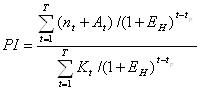 3.3.2. Индекс доходности (PI)Индекс доходности (PI) характеризует экономическую отдачу вложенных средств и представляет собой отношение суммарных приведенных чистых поступлений (прибыли от реализации нефти и амортизационных отчислений) к суммарному дисконтированному объему капитальных вложений: