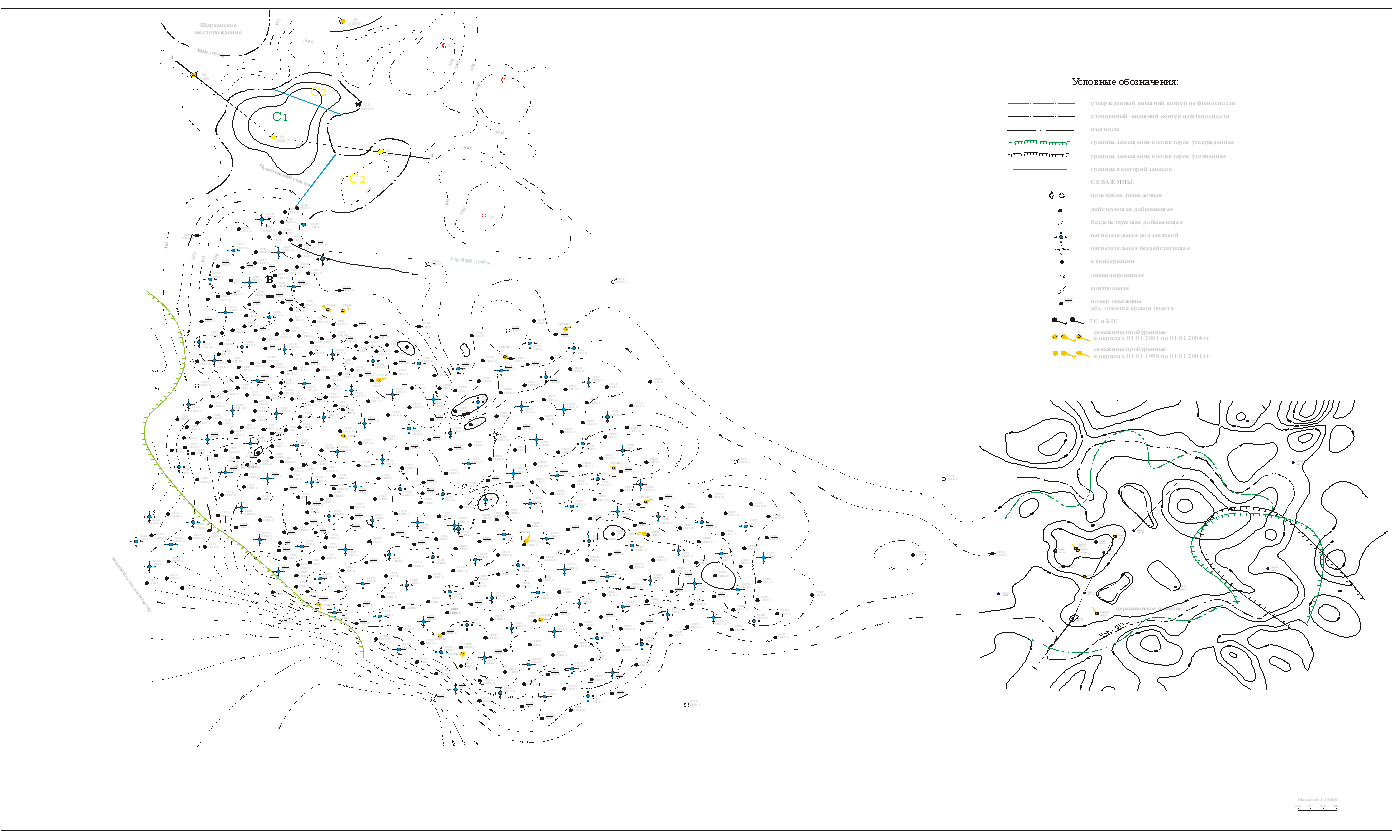 Из данных табл. 1 можно сделать вывод о закономерности изменения свойств нефтей в зависимости от глубины залегания или возраста объектов, их содержащих. Так нефти турнейского пласта, по сравнению с верейскими, более тяжелые, в них меньше светлых фракций, они более вязкие. С возрастанием глубины также уменьшается газосодержание (и, следовательно, уменьшается объемный коэффициент нефти) и увеличивается давление насыщения из-за увеличения содержания азота в попутном (растворенном) газе. Растворенный в нефти газ является азотно-углеводородным и характеризуется высокой плотностью, с содержанием азота в отложениях соответственно верейского горизонта - 33,17%, башкирского яруса - 39,29%. Газ турнейского яруса по своему составу, в сравнении с газом верейских и башкирских пластов, имеет низкую плотность по воздуху 1,181, более высокое содержание азота (64,61%), небольшое содержание углеводородов. Попутный нефтяной газ Мишкинского месторождения содержит большое количество инертных, негорючих составляющих, поэтому он утилизируется в атмосферу с помощью факелов. Пластовые воды рассматриваемого месторождения характерны для региона в целом, и для московских, башкирских, визейских и турнейских отложений являются рассолами хлоридно-кальцевого типа. Отчетливо выраженной тенденции изменения физико-химических свойств пластовых вод по продуктивному интервалу разреза не отмечается, за исключением уменьшения вязкости в пластовых условиях с возрастанием глубины из-за повышения температуры. Средняя плотность пластовых вод 1,17 г/см³, а минерализация — 260 г/л. Газовый фактор пластовой воды незначителен, а растворенный газ в основном представлен азотом. По товарным качествам нефти Мишкинского месторождения характеризуются как тяжелые, высокосернистые, парафинистые и смолистые. 1.6. Запасы нефти и газа, конденсатаЗапасы нефти Мишкинского месторождения утверждены ГКЗ СССР (протокол № 5992 от 1970 года) /1/ отдельно по двум поднятиям (Воткинское, Черепановское). Начальные запасы нефти, утвержденные протоколом ГКЗ № 5992 и в целом по месторождению составляли 206761 тыс. т геологических и 74286 тыс. т извлекаемых, в том числе по категориям: 44306 тыс. т геологических и 16066 тыс. т извлекаемых категории B; 123769 тыс. т геологических и 45014 тыс. т извлекаемых категории С1; 38686 тыс. т геологических и 13206 тыс. т извлекаемых категории С2. По результатам выполнявшихся в процессе разработки месторождения работ (бурение скважин, сейсморазведочные работы) на месторождении неоднократно осуществлялись переводы запасов нефти в более высокие категории, списания не подтвердившихся запасов, приросты запасов нефти. Остаточные запасы нефти по состоянию на 01.01.2004 г. в целом по месторождению составляют: 142 535 тыс. т геологических и 35 540 тыс. т извлекаемых категории B+C1, 38 686 тыс. т геологических и 13 206 тыс. т извлекаемых категории С2. Накопленная добыча нефти на 31.12.2006 г. составила 28 649 тыс. т. Начальные балансовые запасы нефти, числящиеся на момент составления проектных документов и на 01.01.2004 г.