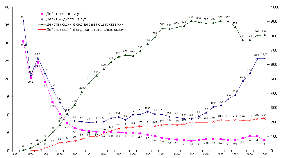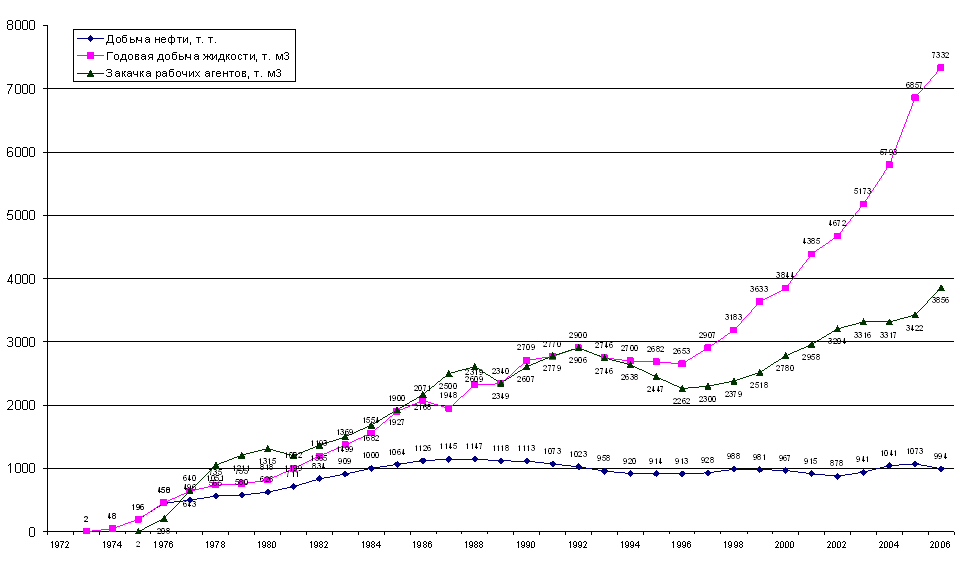 Основные показатели разработки Мишкинского месторождения (добыча, закачка)
