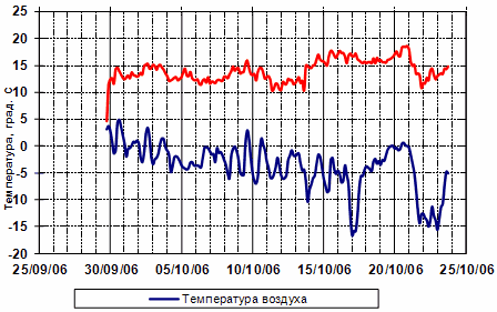 Рисунок 3.19 - Изменение температуры воздуха и температуры в термокармане во времени Из представленного графика видно, что продолжительность выхода на температурный режим после включения кабеля составляет примерно 12 часов. Колебания температуры в термокармане связаны с тем, что не удается полностью изолировать термодатчик (рис.3.20) от влияния температуры окружающей среды, поэтому он частично отражает и ее. При этом температура протекающей жидкости является постоянной для заданного температурного режима. Увеличение температуры в период с 14 октября связанно с тем, что был изменен температурный режим, и температуру увеличили до 17оС, путем увеличения токовых нагрузок. На рис.3.21 представлена схема подключения греющего кабеля к скважине, оборудованной УЭЦН. Рисунок 3.21- Схема подключения греющего кабеля 3.5.3 Опыт применения греющего кабеля в ОАО «Аганнефтегазгеология» В ОАО «Аганнефтегазгеология» использование технологии прогрева НКТ с помощью греющего кабеля начато с 2005 года. В настоящее время данным методом защищены от образования ГПП 7 скважин. Практика добычи нефти с помощью УЭЦН показывает, что интенсивное образование ГПП происходит лишь в начальный период (по некоторым скважинам) работы после смены УЭЦН. После 20-30 суток работы скважины ее режим стабилизируется и в дальнейшем появляется возможность бороться с образованием гидратно-парафиновых пробок обычным способом – скребкованием. Простота технологии спуска-подъема греющего кабеля позволяет оперативно извлекать его из скважины с установившемся режимом работы и спускать в скважины, где это наиболее необходимо в данный момент. В условиях эксплуатации УЭЦН на скважинах, где приток жидкости из пласта ниже производительности УЭЦН и высокий газовый фактор, применение греющего кабеля позволяет путем установки штуцера (на устье) малого диаметра (2-3 мм) выводить скважины на стабильный режим работы, что в конечном итоге приводит к увеличению межремонтного периода. Проведенный анализ работы скважин со спущенным греющим кабелем выявил следующие положительные результаты: 1. постоянную чистоту внутреннего пространства НКТ, фонтанной арматуры и прилегающих к ним ближних трубопроводов; 2. повышение работоспособности и увеличение срока службы УЭЦН, в том числе за счет снижения вязкости жидкости, подаваемой на поверхность; 3. непрерывность работы скважины и трубопроводов – полностью ликвидирует текущие простои скважины, связанные с образованием ГПП, намного увеличивает время между ремонтами скважин, снижение объема ремонтных работ, уменьшение количества ремонтных бригад и спецтехники; 4. полностью исключает применение других способов удаления гидратно-парафиновых отложений (СПО скребков, горячая обработка нефтью с помощью АДП и др.); 5. возможность регулировки мощности установки - выбор оптимального температурного и энергосберегающего режима работы скважины или трубопровода; 6. экологическую чистоту вокруг скважины; 7. максимальное упрощение управления работой скважины, которое сводится к приборному контролю за техническими и электрическими параметрами и компьютерной обработке этих данных; 8. увеличение среднего дебита скважины, улучшение работы пласта за счет равномерного режима добычи, уменьшение потерь нефти, повышение коэффициента эксплуатации скважин; 9. не