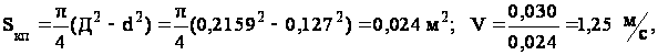 где Дг - гидравлический диаметр, Дг = Д-d = 0,2159-0,147 = 0,0689 м