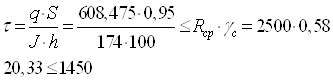 Условие выполняется. 2. По допустимости касательных напряжений: