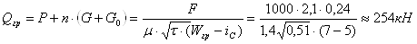 где Рсц=45кН - вес электровоза; G – вес груза в вагоне, кН; G0 – вес порожней вагонетки, кН; аП – пусковое ускорение при трогании аmin=0,05Н/с2; Wгр – удельное сопротивление движению (принимается по табл.15), Н/кН; iC=5Н/кН – сопротивление движению за счёт уклона, кН. Вес груженного состава из условия нагревания двигателя при работе с длительной силой тяги Fдл: