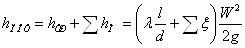 где Общие потери напора в трубопроводе, включая потери на трение и местные потери, находят суммированием: