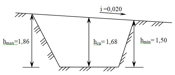 hmax1 = hmin +il = 1,5 + 0,020 × 15,50 = 1,86 м.