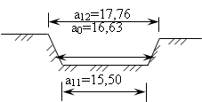 Рисунок 6 Котлован под здание F11 = а11b11 = 15,50 ×54,50 = 845 м2; F12 = а12b12 = 17,76 × 55,63 = 988 м2; F0 = а0b0 = 16,63 × 55,63 = 926 м2; Vк1 = hmax1 = hmin +il = 1,86 + 0,020 × 18,00 = 2,28 м.