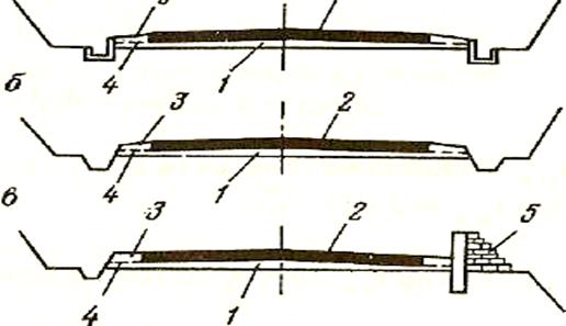 Рисунок 7.3 - схема возведения первоначальной насыпи из мягких пород колесным скрепером: 1 - откос отвала; 2 - забой; 3 - отвал; 4 - карьер; 5 – скрепер