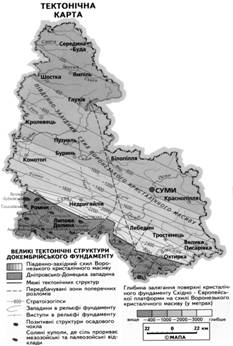 Реферат: Тектоніка та корисні копалини Сумської областіРеферат: Тектоніка та корисні копалини Сумської областіРеферат "Тектоніка та корисні копалини Сумської області" Вступ Сумська область у своїй основі має типово платформенні утворення за особливістю тектонічної будови, які значно поширені за площею, але у цілому малопотужні і складаються з відкладів докембрійського, палеозойського, мезозойського і кайнозойського віку. При цьому на денну поверхню виходять лише молоді відклади крейдового, палеогенового та неогенового віку. Більш давні утворення зазвичай поховані під досить потужним чохлом порівняно молодих відкладів, а їх присутність у межах території області можна довести лише за допомогою буріння. Винятком є тільки невелика ділянка поблизу м. Ромни. Особливості геологічної будови Сумської області зумовлені розташуванням її в межах Східноєвропейської платформи, фундамент якої складено дуже дислокованими кристалічними породами архею та протерозою. За схемою тектонічного районування територія області знаходиться на стику двох структур: більша частина території знаходиться на південно-західному схилі Воронезької антеклізи і лише най південніші райони входять до складу Дніпровсько-Донецької западини та розміщені на території Дніпровського грабена. Дніпровсько-Донецька западина – це внутрішньоплатформний прогин, формування якого пов’язане із системою глибинних розломів. Тектонічна будова південно-західного схилу Воронезького кристалічного масиву не відзначається особливою складністю, хоча слід зазначити, що вивчена вона недостатньо. Проте отримані дані дозволяють висловити думку про загальний нахил поверхні кристалічного фундаменту даної території в південно-західному напрямку. Глибина залягання цієї поверхні на північ від м. Суми – 600-700м, у районі Глухова вона становить майже 300м, а на півдні області поблизу глибинних розломів – 3000-3500м і більше. Кути нахилу поверхні фундаменту переважно невеликі: на півночі, ймовірно, вони не перевищують 1°, на південь збільшуються до 2-3°, а в районі розломів становлять 5-6°, а іноді досягають 8-10°.Кристалічний фундамент у межах області тектонічними розломами розбито на серію блоків. З’єднання схилу Воронезького кристалічного масиву із Дніпровським грабеном відбувається по глибинному розлому, який є системою скидів із сумарною амплітудою до 3-4км. Простягається цей глибинний розлом з північного заходу на південний схід від с. Медвеже (Роменського району) до м. Охтирки. Південніше м. Лебедина біля с. Берестівка він утворює виступи, обернені у бік Дніпровського грабена. Найхарактернішими рисами Дніпровського грабена є значна подрібненість кристалічного фундаменту: одні блоки його опущені, інші займають відносно високе положення. У напрямку із заходу на схід у складі кристалічного фундаменту виділяють Талалаївське підняття, Липоводолинський виступ, Роменську та Срібненьку западини, Берестівський та Новотроїцький виступи, Синівську й Качанівську западини, Гунське підняття, Охтирську западину. Абсолютні відмітки кристалічного фундаменту на півдні області коливаються у межах 5-8км, у піднятих блоках вони становлять 5-6км, а у западинах – 6-8км. Згідно з геоморфологічним районуванням України територія Сумської області розташована в межах Полісько-Дніпровської ни