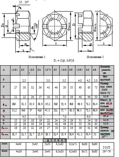 Приложение 1 Гайки шестигранные прорезные и корончатые. Выдержки из ГОСТ 5932-73, ГОСТ 5918-73.
