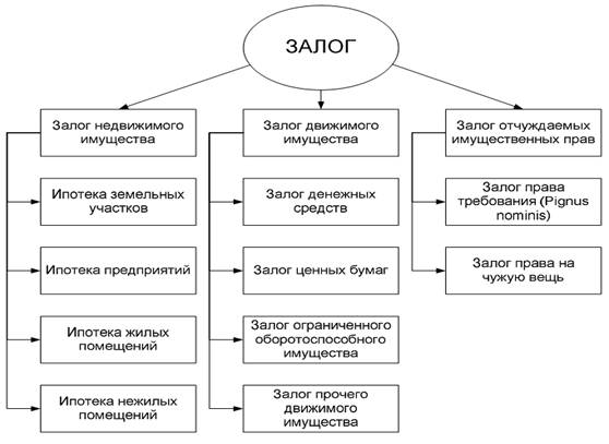Рисунок 1.1 – Залоговые правоотношения Постулатом российской юридической науки является подразделение всех гражданских правоотношений на абсолютные и относительные. За отсутствием четко сформулированного критерия их различения сам данный подход (или, во всяком случае, его целесообразность) на протяжении вот уже более века подвергается сомнению. Полемика эта представляется бесплодной, ибо нет никаких сомнений в том, что существуют отношения: в которых активная сторона претендует на правовое оформление и защиту своей возможности совершать свободные и самостоятельные активные действия с вещами, продуктами интеллектуального творчества и иными благами; в которых активная сторона притязает на отягощение чужой активности, то есть требует совершения другим лицом определенных активных действий либо, напротив, воздержания от их совершения. Отношения первого типа связывают активную сторону со всяким и каждым (как бы трудно это и ни было для понимания и представления), второго - с определенным конкретным лицом. Первые именуются правоотношениями абсолютными, вторые - относительными. Если такая характеристика абсолютных и относительных правоотношений верна, то традиционная постановка вопроса о природе залога - является ли залог (залоговое правоотношение) вещным или обязательственным - представляется, мягко говоря, непоследовательной. Почему предлагается такая "железная" альтернатива: или залог - правоотношение вещное (а не какое-либо другое абсолютное правоотношение), или непременно обязательственное (а не иное правоотношение относительного типа)? Аргументы в пользу обязательственно-правовой или вещно-правовой природы залога можно выразить в следующем. Точка зрения, в соответствии с которой залог является абсолютным правоотношением, доказывается так: право залога может быть индивидуализировано указанием на его существо (залог), на определенного активного субъекта (залогодержателя) и на индивидуально определенный объект (тогда как для индивидуализации относительных правоотношений нужно еще иметь информацию и о должнике, и об основании возникновения обязательства); праву залогодержателя получить удовлетворение из заложенного имущества (совершив собственные активные действия по его продаже, что не присуще правам обязательственным) противостоят обязанности, состоящие в воздержании от нарушения права, которые лежат на всяком и каждом, включая самого собственника заложенного имущества и других кредиторов, а потому не допускают преемства (что тоже не характерно для обязанностей, составляющих содержание относительных правоотношений); коль скоро право залогодержателя, как и всякое иное абсолютное право, направлено против всякого и каждого, оно, поэтому может быть нарушено всяким и каждым (неопределенным кругом лиц), и потому залогодержателю вручаются такие средства защиты своего права, которые применимы только для защиты абсолютных прав - прав на индивидуально-определенные вещи; для всякого абсолютного (в том числе вещного) права (в отличие от обязательственного) характерно так называемое право следования за вещью, т.е. право активного субъекта истребовать вещь от всякого, кто незаконно владеет ею; точно так же и право залога действует в отношении всякого, к кому попала вещь, отчужденная лицом, не имеющим права ею 