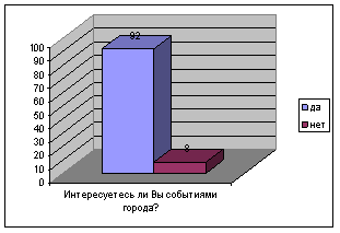 Рисунок 1 - Интересуетесь ли Вы событиями, происходящими в Вашем городе? О заинтересованности в событиях и мероприятиях, происходящих в городе и районе, ответило большинство, что положительно характеризует работу органов управления процессом реализации направлений молодежной политики в городе. Вопрос "Как часто Вы интересуетесь событиями, происходящими в Вашем городе?" является ранжированным по частоте: "ежедневно" - 16%, "часто, но не каждый день" - 48%, "бессистемно" 28% и ответ "никогда" - 8 % (представлено на рисунке 2). Ответ "часто" был дан студенческой молодежью, так как именно в этой группе молодые люди по ряду причин интересуются событиями, происходящими в городе и районе. В то время как ответ "никогда" дала взрослая молодежь, чьи интересы сконцентрированы на работе и молодой семье.