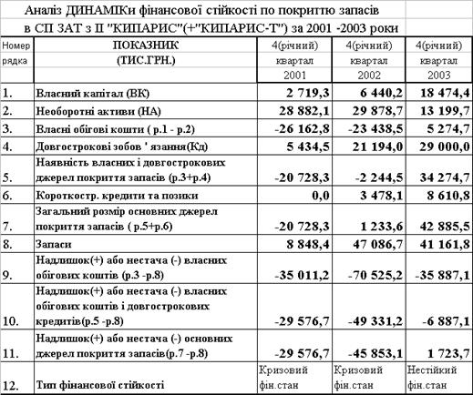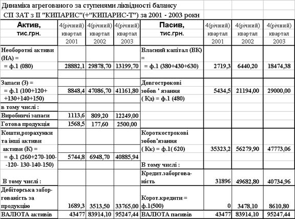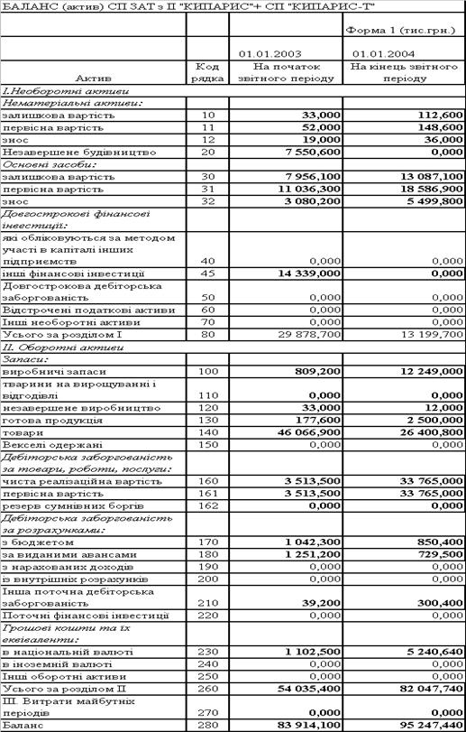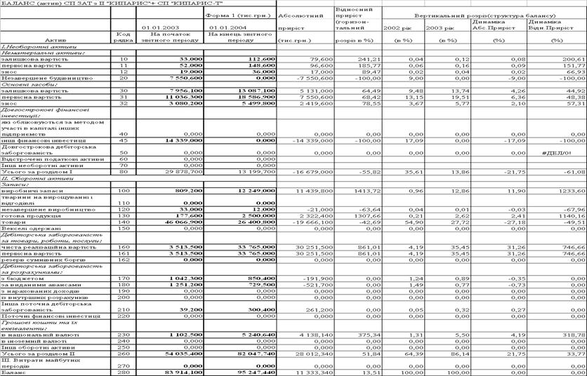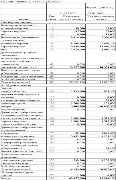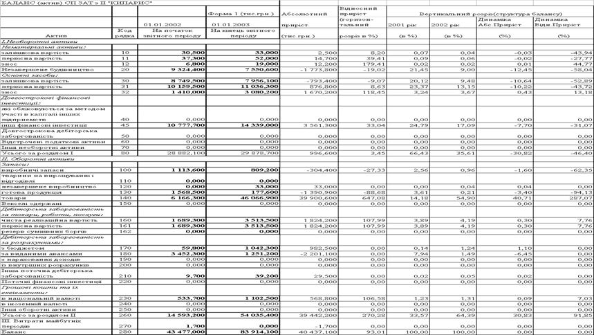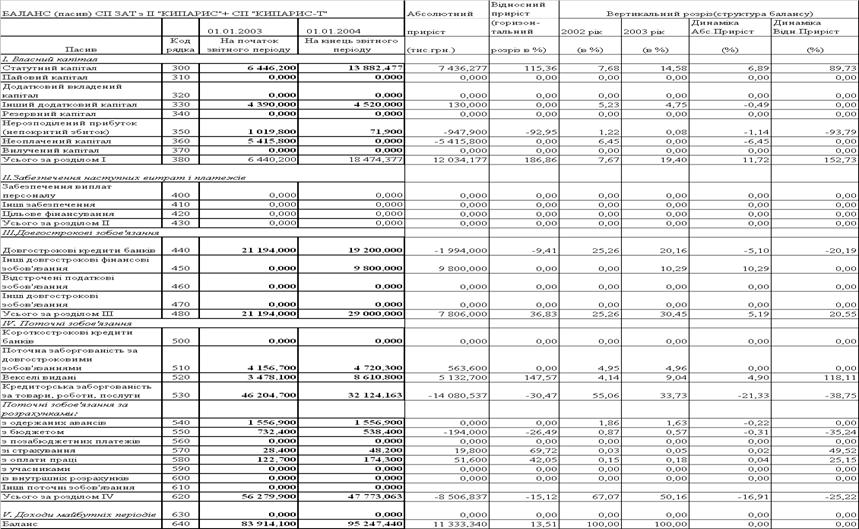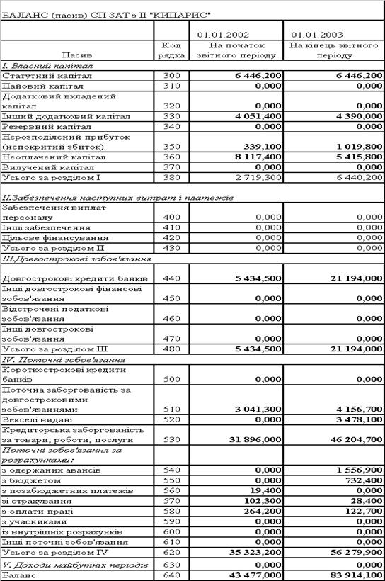 Таблиця 2.6 Баланси ЗАТ СП з ІІ "КИПАРИС '' за 2002 2003 роки