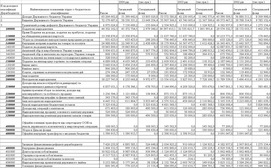 Таблиця 3.3 – Динаміка доходів Державного бюджету України у 2002 – 2004 роках