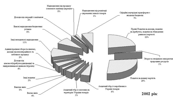 Рис.3.1 Структура доходів Державного бюджету України за 2002 рік |