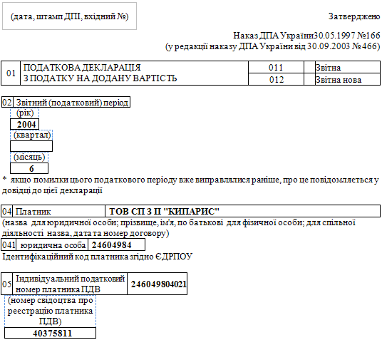 | Декларацiя подається до державної податкової iнспекцiї(адмiнiстрацiї) в СДПI ПО РОБОТI З ВПП У М.ДНIПРОПЕТРОВСЬК |
