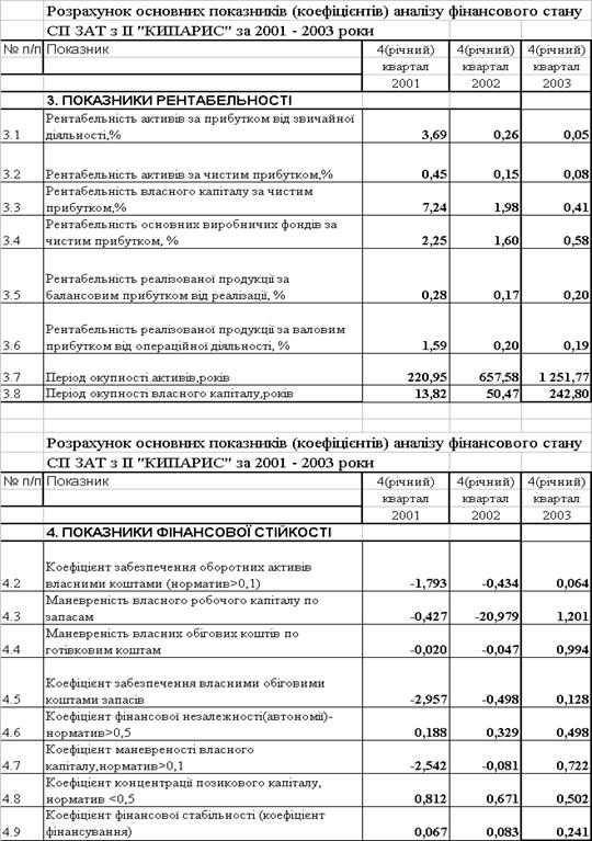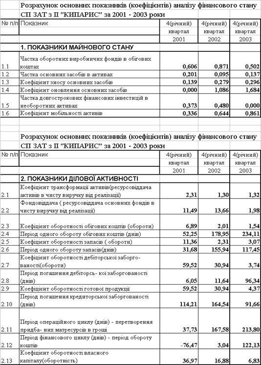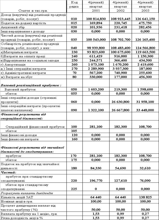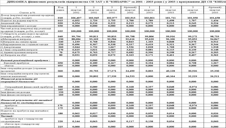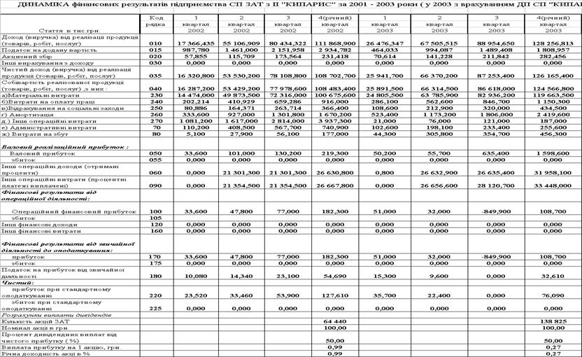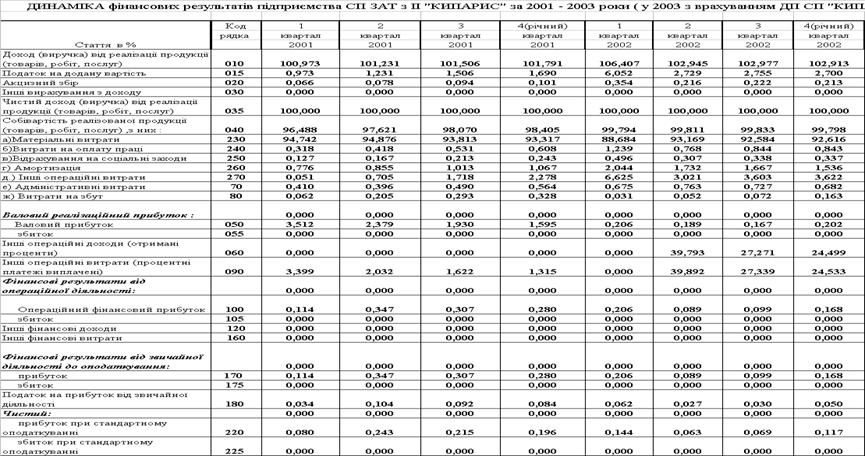 Таблиця 2.7 – Звіти про фінансові результати діяльності ЗАТ СП з ІІ "КИПАРИС" за 2001 – 2003 роки