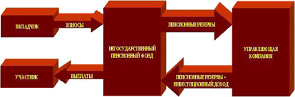 Рисунок 1.4 – Схема добровольного пенсионного обеспечения В рамках договора негосударственного пенсионного обеспечения вкладчик, которым может быть как частное лицо, так и организация, уплачивает взносы в негосударственный пенсионный фонд, который зачисляет их на пенсионные счета и формирует за счет совокупности этих взносов пенсионные резервы. Пенсионные резервы передаются негосударственным пенсионным фондом управляющей компании, которая осуществляет их инвестирование в различные активы, а инвестиционный доход начисляется негосударственным пенсионным фондом на пенсионные счета вкладчиков. Участниками негосударственного пенсионного фонда могут быть как частные лица, самостоятельно заключившие договор негосударственного пенсионного обеспечения и уплачивающие взносы, так и лица, в пользу которых заключается договор и производится уплата взносов (например, сотрудники организации – вкладчика, родственники вкладчика – частного лица). По достижении пенсионного возраста участники получают выплаты из негосударственного пенсионного фонда в размере, определяемом договором негосударственного пенсионного обеспечения. При заключении договора негосударственного пенсионного обеспечения вкладчик имеет возможность выбрать отдельные параметры, такие как порядок внесения пенсионных взносов, порядок выплаты пенсии, возможность расторжения договора и получения выкупной суммы, возможность наследования пенсионных накоплений, что позволяет в максимальной степени удовлетворить потребности вкладчика. Негосударственный пенсионный фонд осуществляет свою деятельность на некоммерческой основе, то есть не извлекает из нее прибыль, а расходы на его деятельность покрываются за счет части получаемого фондом инвестиционного дохода. При этом размер средств, которые негосударственный пенсионный фонд вправе расходовать на обеспечение своей деятельности в соответствии с законом, не может превышать 15 % от размера полученного фондом инвестиционного дохода. Негосударственное пенсионное обеспечение основано на накопительных принципах, что предполагает зависимость размера негосударственной пенсии от размера взносов, периода накопления и результатов инвестирования. При этом, в отличие от взносов на обязательное пенсионное страхование, размер взносов в негосударственный пенсионный фонд не ограничен, что позволяет вкладчику негосударственного пенсионного фонда самостоятельно, исходя из своих возможностей, определить размер своей будущей пенсии и накопить ту сумму, которая позволит избежать финансовых проблем в старости. Помимо размера взносов в негосударственный пенсионный фонд, на размер негосударственной пенсии также влияют условия получения пенсии, предусмотренные пенсионными правилами фонда и договором негосударственного пенсионного обеспечения. В частности, в договоре можно предусмотреть не пожизненное получение пенсии, а в течение определенного времени, либо отсрочить назначение негосударственной пенсии позже наступления пенсионного возраста. Такие условия договора негосударственного пенсионного обеспечения могут увеличить размер пенсии в силу ограничения обязательств фонда по сроку, либо в силу увеличения периода накопления. За 10-летний период существования НПФ, у них появился не малый позитивн