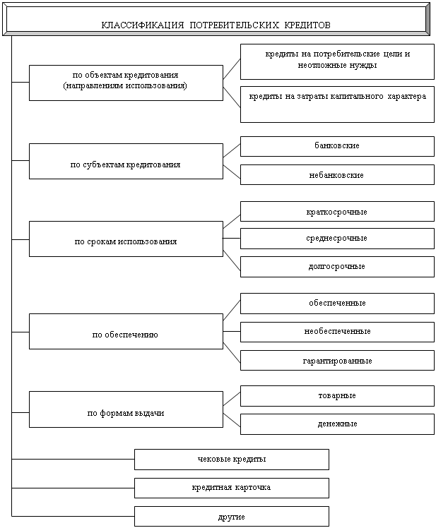 Дипломная работа: Потребительское кредитование и перспективы его развитияДипломная работа: Потребительское кредитование и перспективы его развитияДипломная работа на тему: "Потребительское кредитование и перспективы его развития на примере Ильичевского главного отделения Проминвестбанка г. Мариуполя" Содержание Введение 1. Основы организации потребительского кредитования 1.1 Сущность потребительского кредита 1.2 Классификация потребительских кредитов 1.3 Принципы и методы потребительского кредитования 1.4 Этапы потребительского кредитования 1.5 Кредитная документация 2. Анализ и оценка эффективности потребительского кредитования (на примере Ильичевского главного отделения Проминвестбанка г. Мариуполя) 2.1 Характеристика Ильичевского главного отделения Проминвестбанка г. Мариуполя 2.2 Организация работы банка по предоставлению потребительских кредитов 2.3 Анализ кредитоспособности заемщика и обеспечение потребительских кредитов 2.4 Оценка кредитной деятельности банка 3. Проблемы и перспективы развития потребительского кредитования в Украине 3.1 Оценка современного состояния потребительского кредитования в Украине 3.2 Основные направления развития потребительского кредитования в Украине 4 Безопасность жизнедеятельности Требования к производственным помещениям. Выводы Перечень ссылок Введение В последнее время потребительское кредитование приобретает все большей актуальности. Связано это с тем, что все звенья общества стремятся эффективно функционировать, а без развития всех направлений банковской инфраструктуры, в первую очередь потребительского кредитования, не возможное нормальное развитие общества, а именно всех его категорий (верст населения). Сегодня в Украине большинство населения не могут себе позволить покупать товары длительного пользования за счет текущих доходов. Почти половина работоспособного населения имеет доходы, которые не превышают прожиточного минимума. Для этих категорий людей, а также пенсионеров, инвалидов и других малообеспеченных граждан приобретения товаров длительного пользования становится невозможным. Изучение системы кредитования физических лиц является необходимым, прежде всего, относительно задач, которые стоят перед коммерческими банками. Активная работа коммерческих банков в отрасли обслуживания частных лиц является необходимым условием укрепления ресурсной базы, расширение рынков их успешной конкурентной борьбы с небанковскими финансово-кредитными заведениями. При этом речь должна идти не только о совершенствовании техники кредитования и расширения видов кредитных услуг, но и о выработке целого комплекса новых принципов отношений банков с физическими лицами. Целью данной выпускной работы является изучение потребительского кредитования и перспективы его развития. В рамках этой цели были поставлены следующие задачи: изучить основы организации потребительского кредитования; проанализировать и оценить эффективность потребительского кредитования на конкретном примере; рассмотреть проблемы и перспективы развития потребительского кредитования в Украине. Работа состоит из четырех разделов. В первом разделе рассматриваются теоретические основы потребительского кредитования населения, подробно рассматриваются виды и этапы, принципы и методы про