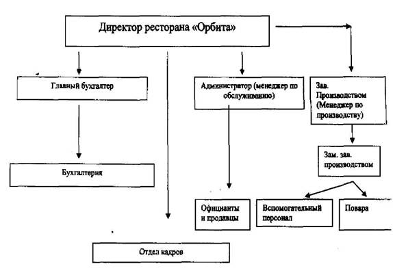 Примечание: Источник: Собственная разработка При линейном управлении каждое звено и каждый подчиненный имеют одного руководителя, через которого по одному единовременному каналу проходят все команды управления. В этом случае управленческие звенья несут ответственность за результаты всей деятельности управляемых объектов. Речь идет о пообъектном выделении руководителей, каждый их которых выполняет все виды работ, разрабатывает и принимает решения, связанные с управлением данным объектом. Поскольку в линейной структуре управления решения передаются по цепочке "сверху вниз", а сам руководитель нижнего звена управления подчинен руководителю более высокого над ним уровня, формируется своего рода иерархия руководителей данной конкретной организации (например, зав. производством – зам. зав. производством - повара ) В нашем случае действует принцип единоначалия, суть которого состоит в том, что подчиненные выполняют распоряжения только одного руководителя. Вышестоящий орган управления не имеет права отдавать распоряжения каким-либо исполнителям, минуя их непосредственного начальника, поскольку тот другой - начальник "моего" начальника. Как видно из Приложения 1, в линейной структуре управления ресторана каждый подчиненный имеет начальника, а каждый начальник имеет несколько подчиненных. Линейная структура управления является логически более стройной и формально определенной, но вместе с тем и менее гибкой. Каждый из руководителей обладает всей полнотой власти, но относительно небольшими возможностями решения функциональных проблем, требующих узких, специальных знаний. В соответствии с законодательством Республики Беларусь, ресторан «Орбита» является юридическим лицом и действует в РБ от имени и по поручению ОАО Минотель. Филиал имеет обособленный баланс, банковские счета, а также собственные печати и штампы, бланки, которые отражают атрибуты ОАО Минотель. Имущество филиала составляют основные фонды и оборотные средства, а так же иные материальные ценности, стоимость которых отражается на отдельном балансе. Собственником имущества является ОАО Минотель. Правом подписи финансовых документов, касающихся деятельности филиала обладает директор филиала и главный бухгалтер. Что касается организации сбытовой политики и принятия решений в сфере маркетинга, на предприятии, этим занимается исполнительный директор. В его обязанности входят следующие функции: планирование, организация, контроль на профессиональном уровне. Ресторан Орбита расположен на 1-ом этаже гостиницы Орбита. Он рассчитан на 300 посадочных мест и имеет два зала. В 1995-1997 гг. ресторан «Орбита» был удостоен звания лучший ресторан Минска, В 2003 году на городском конкурсе кулинарного искусства ресторан «Орбита» занял второе место в номинации «Лучшая сервировка», а в номинации «Лучший официант 2003 года» победителем стал работник ресторана. Рабочий день начинается в 7 часов утра с обслуживания гостей на завтраках по системе шведский стол (свободный выбор блюд). Завтраки в ресторане входят в стоимость проживания гостей из дальнего и ближнего зарубежья. Основную работу ресторан начинает с 12 часов дня. В это время посетителям предлагается специальное обеденное меню с наценкой 70%. «Орбита» - ресторан высшей наценочной категории. Отличается высокой культу