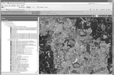 Рис. 7 Схема формирования информационных продуктов и их публикации в сети Интернет с спользованием программных средств ArcGIS Наборы пространственных данных включают следующие группы: · цифровые топографические карты разных масштабов, в зависимости от уровня кадастрового деления, и геодезическая основа; · ортофотопланы, создаваемые по материалам актуальной аэросъемки или космической съемки высокого разрешения; · данные государственного кадастра недвижимости, включая данные о кадастровом делении территории и пространственную и семантическую информацию по земельным участкам; · адресная информация; · тематическая информация, используемая для реализации различных приложений в интересах различных групп пользователей (например, данные по использованию и состоянию земель, почвенные карты и др.). Базисом для совмещения и увязки различных наборов данных служит актуальная пространственная основа, достоверно отражающая современное состояние местности. Для решения большинства управленческих задач муниципального уровня требуемые масштабы — 1:25 000 и крупнее; для ведения ГКН определены масштабы 1:10 000 для межселенной территории и 1:2000 для населенных пунктов. В условиях значительного устаревания для большей части России картографических материалов, особенно крупномасштабных, актуальная пространственная основа создается на базе материалов аэросъемки или космической съемки высокого разрешения. Возможности использования данных дистанционного зондирования Земли (ДЗЗ) из космоса существенно расширились в последние годы, когда широкому кругу потребителей стали доступны космические снимки с разрешением до 50 см, обеспечивающие крупномасштабное картографирование на больших площадях. Дополнительным преимуществом космической съемки является возможность синхронного получения, наряду с панхроматической съемкой, данных мультиспектральной съемки в различных спектральных диапазонах, что значительно увеличивает точность дешифрирования объектов. Пространственная основа для территории Тосненского района создавалась по материалам космической съемки со спутников SPOT-5 (17.05.2007), ALOS (05.06.2008), QuickBird (26.08.2008), получение которых обеспечивала компания "Совзонд". Создание ортофотопланов выполнялось с использованием опорных точек в программной среде PHOTOMOD-4, в местной системе координат, в которой осуществляется ведение ГКН. Точность составления ортофотопланов по материаламсъемки SPOT-5 и ALOS соответствует точности масштаба 1:25 000, по материалам космической съемки QuickBird — точности масштаба 1:10 000. С использованием ортофотопланов были проведены обновление и корректировка наиболее быстро меняющихся базовых топографических слоев, в первую очередь, автодорог, служащих важным элементом при кадастровом делении территории (рис. 8).