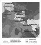 Рис. 9 Фрагмент кадастрового плана и карты земельных участков Тосненского района Ленинградской обл. 2.3 Анализ качественного состояния земель и разработка мероприятий по их улучшению (по материалам мониторинговых исследований) Уровни существующего загрязнения почв в основном определяются видом их хозяйственного использования. Общая тенденция известна - усиление техногенного воздействия наблюдается от биогенных ландшафтов к промышленным зонам. Наибольшему техногенному воздействию подвергаются территории промышленных предприятий, автомобильных и железных дорог, меньшей - селитебные зоны и зоны проектируемой застройки. Почвы В пределах Тосненского района основная зона с начальным уровнем загрязнения почвы в естественных ландшафтах тяжелыми металлами прослеживается на северо-западе района в виде полосы (шириной до I0-15 км), которая обрамляет транспортные магистрали от Санкт-Петербурга на Мурманск, Москву и Новгород. Эта зона представляет собой замыкание обширной техногенной аномалии, которая охватывает Санкт-Петербург и его инфраструктуру в восточном и юго-восточном направлениях. Более высокий уровень суммарного загрязнения почвы тяжелыми металлами отмечен на участке Красный Бор - Форносово; этот участок является продолжением контрастной аномалии, которая занимает территорию в районе г. Колпино. Ореолы начального загрязнения почвы отмечены также вдоль дороги на Новгород, между пос. Радофинниково и дер. Каменка. Основными компонентами загрязнения являются цинк, медь, никель, свинец. Общая площадь территории с начальным уровнем техногенного загрязнения почвы тяжелыми металлами составляет в Тосненском районе примерно 500 кв. км или около 15% всей территории района. В Тосненском районе обследовано на содержание подвижных форм тяжелых металлов и фтора 26 000 га сельскохозяйственных угодий. Выявлены довольно значительные площади сельскохозяйственных земель с начальным загрязнением почвы (содержание элемента в диапазоне 0,5-1 ПДК) медью и цинком (примерно по 1200 га), а также свинцом, кадмием, мышьяком (примерно по 300-400 га). Наиболее распространены сельскохо-зяйственные земли с начальным загрязнением почвы фтором - 6700 га. Сельскохозяйственные земли, где концентрация подвижных форм элементов превосходит ПДК, распространены в значительно меньшей степени: фтор - 370 га, цинк - 100 га, остальные элементы - до 50 га. Довольно широкое распространение в Тосненском районе сельскохозяйственных угодий с начальным загрязнением тяжелыми металлами обусловлено влиянием Ижорского завода и всей инфраструктуры Санкт-Петербурга; основ-ной причиной загрязнения сельскохозяйственных земель фтором является внесение этого элемента в составе фосфорных удобрений. Загрязнение почв отходами производства и потребления является одной из серьезных экологических проблем. Свинокомплекс ООО "Рюрик-Агро" регулярно осуществляет вывоз на сельскохозяйственные поля жидкой фракции навоза. В настоящее время организованные места для хранения и утилизации ТБО на территории Тосненского района отсутствуют и создание такой территории не планируется. Единственным природным компонентом окружающей среды, способным улучшить ее качество, являются зеленые насаждения. Состояние лесных угодий на территории Тосненского района Ленинградской области несколько 