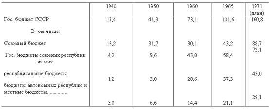 По табл .2.3 мы видим, что с течением времени после отечественной войны экономика СССР и ее республик стремительно начала восстанавливаться, а впоследствии и развиваться, что сильно сказалось на бюджете страны, он стал увеличиваться в разы.
