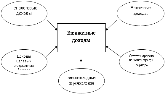 Рис.1 Структура доходов бюджета. Основной статьей дохода государственного бюджета являются налоговые поступления. Экономическая сущность налогов характеризуется денежными отношениями, складывающимися у государства с юридическими и физическими лицами. Эти денежные отношения объективно обусловлены и имеют специфическое общественное назначение – мобилизацию денежных средств в распоряжение государства. Поэтому налог может рассматриваться в качестве экономической категории с присущими ей двумя функциями - фискальной и экономической. С помощью первой формируется бюджетный фонд; реализуя вторую, государство влияет на воспроизводство, стимулируя или сдерживая его развитие, усиливая или ослабляя накопления капитала, расширяя или уменьшая платежеспособный спрос населения. Доходы бюджетов ¾ денежные средства, поступающие в безвозмездном и безвозвратном порядке в соответствии с законодательством в распоряжение органов государственной власти соответствующего уровня. Конкретными формами проявления категории налога являются виды налоговых платежей, устанавливаемых законодательными органами власти. С организационно-правовой стороны налог - это обязательный платеж, поступающий в бюджетный фонд в определенных законом размерах и установленные сроки. Совокупность разных видов налогов, в построении и методах исчисления которых реализуются определенные принципы, образуют налоговую систему страны. Выделяют следующие основные виды налоговых доходов:[8] - налоги на прибыль, доход, прирост капитала; - налоги на товары и услуги, лицензионные и регистрационные сборы; - налоги на совокупный доход; - налоги на имущество; - платежи за пользование природными ресурсами; - налоги на внешнюю торговлю и внешнеэкономические операции. Неналоговые доходы, к которым в соответствии со ст. 41 Бюджетного кодекса относятся: - доходы от использования имущества, находящегося в государственной и муниципальной собственности; - доходы от платных услуг, оказываемых бюджетными учреждениями, находящимися в ведении соответственно федеральных органов исполнительной власти, органов исполнительной власти субъектов РФ, органов местного самоуправления; - средства, полученные в результате применения мер гражданско-правовой, административной, уголовной ответственности, в том числе штрафы, конфискации, компенсации, а также средства, полученные в возмещение вреда, причиненного РФ, субъектам РФ, муниципальным образованиям, и иные суммы принудительного изъятия; - доходы в виде финансовой помощи, полученной от бюджетов других уровней бюджетной системы РФ, за исключением бюджетных ссуд и бюджетных кредитов; - иные неналоговые доходы (прибыль Банка России, доходы от внешнеэкономической деятельности). Безвозмездные перечисления (ст. 45 Бюджетного кодекса РФ) включают следующие поступления: - От нерезидентов; - От других уровней власти (дотации, субвенции, средства, перечисленные по взаимным расчетам, трансферты, прочие безвозмездные поступления); - От государственных внебюджетных фондов; - От государственных предприятий и учреждений; - От наднациональных организаций. Доходы бюджета - это денежные средства, поступающие в безвозмездном и безвозвратном порядке в соответствии законодательством в распоряжение органов государственной власти соответствующего у