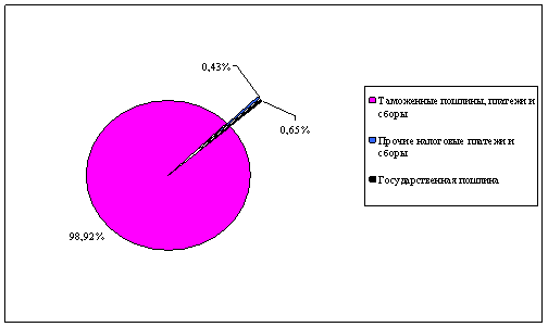 Удельный вес государственной пошлины в доходной части федерального бюджета вообще выглядит как 0%, что не дает возможности представить ее более наглядно. Таким образом, сумма налогового дохода, получаемого государством от государственных пошлин очень незначительна, в силу чего необходимо решать вопрос о повышении эффективности системы государственных пошлин. По мнению автора курсовой работы, существует два пути увеличения сумм поступлений от государственных пошлин: 1) Пересмотр размеров ставок государственных пошлин – наиболее сложный и трудоемкий путь, требующий материальных затрат на расчет, оптимизацию и прогнозирование новых ставок; 2) Сокращение числа льгот по уплате государственных пошлин – наиболее оптимальное решение, по этому пути уже пошел законодатель, отменив большую часть льгот по уплате государственных пошлин за совершение нотариальных действий, что и было закреплено во второй части Налогового Кодекса. В том случае, если оставить все без изменений систему государственных пошлин можно вообще отменить, так как в скором времени сумма от их поступлений не будет покрывать ни одну из расходных статей бюджета. 3. Виды государственной пошлины В зависимости от органа, на которого возложена обязанность удерживать государственную пошлину, различают государственную пошлину, взимаемую при обращении: 1) в суды общей юрисдикции, к мировым судьям, в арбитражные суды, в Конституционный Суд Российской Федерации и конституционные (уставные) суды субъектов Российской Федерации; 2) в нотариальные органы; 3) в органы записи актов гражданского состояния (ЗАГСы) и иные уполномоченные органы; 4) в органы внутренних дел и другие уполномоченные органы при совершении действий, связанных с приобретением гражданства Российской Федерации, выходом из гражданства Российской Федерации, с въездом в Российскую Федерацию и выездом из Российской Федерации; 5) в федеральные органы исполнительной власти по вопросам официальной регистрации программы для электронных вычислительных машин, базы данных и топологий интегральных микросхем; 6) в государственные учреждения по осуществлению федерального пробирного надзора; 7) в иные государственные органы, органы местного самоуправления, иные уполномоченные органы и (или) к соответствующим должностным лицам. На юридически значимые действия государство назначает выплату, которая и называется госпошлиной. Так же госпошлина выплачивается при выдаче документов государственными органами или лицами, имеющими на то от государства должностные полномочия. Госпошлина в Российской Федерации относится к обязательному и действующему на всей территории страны платежу. Собственно в статье 13 Налогового Кодекса разъясняется, что госпошлина относится к федеральным налогам и сборам. И каждый уплачивающий госпошлину, кроме как обычным плательщиком, в этом случае становится также и налогоплательщиком. И это его обязывает в соответствии с пунктом 1 статьи 45 Налогового кодекса лично платить госпошлину. Уплата госпошлины вместо кого-то другого в Налоговом кодексе не предусмотрена. По виду и названию юридически значимых действий различают многие виды пошлин. В большинстве своем госпошлины это регистрационные и гербовые сборы, а также различающиеся по виду и названию юридических действий пошлины. Как то,