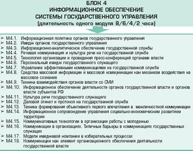 Блок 4. Информационное обеспечение системы государственного управления (18 модулей).