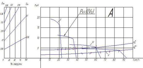 Многопараметровая характеристика двигателя (график В), представляющая собой зависимость удельного расхода топлива gе в функции нагрузочного Ме и скоростного n режимов работы, снимается экспериментально. На оставшейся части формата А1 должны быть размещены график мощностного баланса и характеристика топливной экономичности (лист 2). 3. Анализ тяговых свойств автопоезда 3.1 Расчет сил сопротивления движению На графике А номограммы строится кривая суммарных сил сопротивления движению на горизонтальном участке дороги для двух весовых состояний автопоезда (с номинальной нагрузкой и порожняком) по формуле: