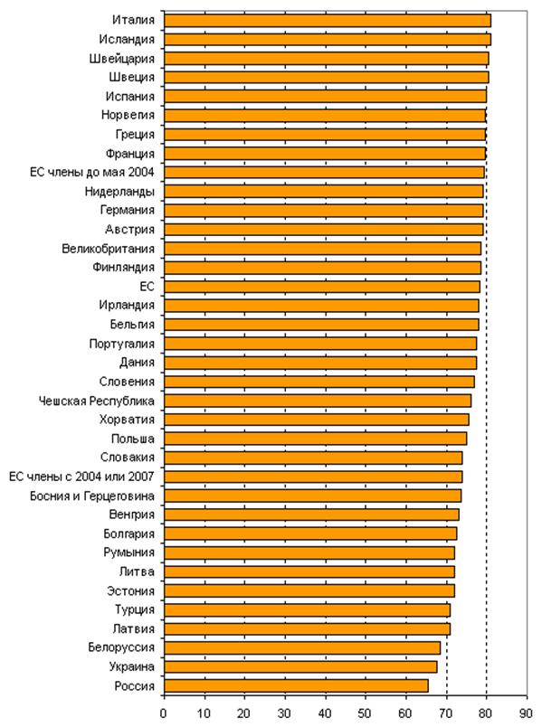 Рисунок. Ожидаемая продолжительность жизни для обоих полов в