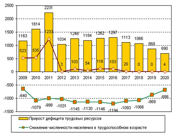Рисунок. Снижение численности населения в трудоспособном возрасте в