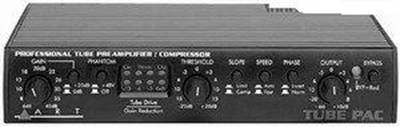 4) На наступному етапі експертиза тестували вибір зовнішнього предпідсилювача (преампи). Убудовані предпідсилювачі в гнітючій частині інтерфейсів і звукових карт не мають достатню якість, це помітно не тільки при записі вокалу, але й при лінійному записі інструментів. Предпідсилювач необхідний, хоча б самий найпростіший і недорогий. Природно, наявність лампи в предпідсилювачі говорить про більше високу якість звуку - "ламповий" звук самий затребуваний і це знає кожний звукорежисер. Виробництво недорогих преампів, де предпосилення реалізоване повністю ламповим способом, практично неможливо через дорожнечу комплектуючих. Пам’ятуючи про це, багато хто відмовляються купувати недорогі вироби, або надовго грузнуть у форумах, обговорюючи, чи варто купувати недорогий преамп. Для вирішення цієї суперечки можна привести кілька прикладів із практики гітаристів, які, як відомо, є самими затятими прихильниками "лампового" звуку. Не будь ця схема успішною, ці моделі б не вироблялися такими тиражами, а якби лампа на виході ніяк не впливала на звучання, навряд чи б виробник став збільшувати власні витрати з її установкою. Те ж саме можна сказати й про вокал. Якщо проспівати що-небудь через внутрішній предпідсилювач пульта або звукової карти, а потім через зовнішній навіть самий недорогий транзисторно-ламповий преамп, відразу можна відчути істотну різницю у звучанні: співати стає набагато комфортніше, звучання стає м'якше й тепліше. ART Tube PAC - предпідсилювачна двох лампах від компанії Yamaha, обладнаний лампово-оптичним компресором. Компресор допомагає позбудеться від зайвих динамічних коливань, що у звукозаписі всіляко вітається( див. мал. 1.12). Ціна 6200 грн .