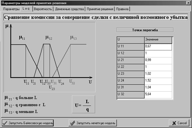 АННОТАЦИЯ В данной дипломной работе предложена модель, предназначенная для использования в процессе игры на повышение или понижение курса акций. Разработана имитационная модель трейдинга. Модель разрабатывалась с применением теории нечетких множеств. Предложено использовать для процесса принятия решения модель с тремя входными переменными, имеющими четкие значения. Модель выдает выходную переменную «принятие решения» также в четком виде. Внутренняя же структура модели является нечеткой. Представленная модель реализована программно, а предложенный метод принятия решения может быть успешно использован для трейдинга. Для анализа эффективности работы модели был также реализован программно Байесовский метод принятия решения. Сравнение работы методов приведено с помощью таблиц и графиков, на основе которых сравнивается прибыль от работы моделей, а также абсолютное и относительное число прибыльных и убыточных сделок. Дипломная работа изложена на __ стр., содержит __ рис., __ табл. Список использованных источников состоит из __ наименований. ВВЕДЕНИЕ В настоящее время существует возможность трейдинга не только через брокера, который берет достаточно большие комиссионные, так что сделка становится невыгодной. Любое физическое лицо может играть на повышение или понижение курса акций достаточно большого числа компаний через Интернет. В связи с этим разработка и применение новых методов прогнозирования поведения цены акций на основе имеющейся информации за прошлые сделки становится все более актуальной. В рамках дипломной работы были реализованы два метода – вычисление вероятности повышения среднего арифметического лучших котировок на покупку и продажу с принятием решения по Байесовской теории и с принятием решения на основе нечетких выводов. Тем трейдерам, у которых есть разработанная и хорошо спланированная торговая система, нет необходимости принимать торговые решения самостоятельно. У них есть план, который точно говорит, что делать в любой ситуации. Все что от них требуется - это следить за рынком, определять, какие действия диктует торговый план. Чаще всего такие торговые планы компьютеризированы. Трейдер вводит рыночные данные, а торговая система говорит ему, что делать, или делает за него все сама. В связи с этим, в рамках настоящей дипломной работы решается задача разработки нечеткой модели принятия решения и программы, реализующей две модели принятия решения: предложенную автором данной дипломной работы технологию нечетких выводов для принятия решения в указанной ситуации (нечеткая модель) и изложенный в литературе Байесовский подход (Байесовская модель). 1. АНАЛИТИЧЕСКИЙ ОБЗОР ЛИТЕРАТУРЫ 1.1. Системы торговли ценными бумагами через сеть Интернет В настоящее время существует возможность интернет-торговли на российском фондовом рынке разными способами. Фондовая Биржа Российской Торговой Системы (в дальнейшем именуемой РТС) – это крупнейшая и наиболее активно используемая в России электронная биржевая площадка, на долю которой приходится около половины от общего объема торгов на российском фондовом рынке. РТС – это первая электронная торговая площадка в России. Как электронная торговая система РТС появилась в середине 1995 года с целью объединения разрозненных региональных рынков в единый органи
