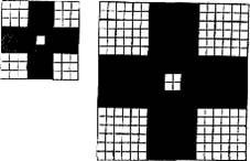 Контрольная работа: Компьютерная графикаКонтрольная работа: Компьютерная графикаВведение Существует два способа представления графических изображений: растровый и векторный. Соответственно различают растровый и векторный форматы графических файлов, содержащих информацию графического изображения. Растровые форматы хорошо подходят для изображении со сложными гаммами цветов, оттенков и форм. Это такие изображения, как фотографии, рисунки, отсканированные данные. Векторные форматы хорошо применимы для чертежей и изображении с простыми формами, тенями и окраской. Отдельным предметом считается трехмерная (3D) графика, изучающая приемы и методы построения объемных моделей объектов в виртуальном пространстве. Как правило, в ней сочетаются векторный и растровый способы формирования изображений. Растровая графика Наиболее просто реализовать растровое представление изображения. Растр, пли растровый массив (bitmap), представляет совокупность битов, расположенных па сетчатом поле-канве. Бит может быть включен (единичное состояние) или выключен (пулевое состояние). Состояния битов можно использовать для представления черного или белого цветов, так что, соединив на канве несколько битов, можно создать изображение из черных и белых точек. Растровое изображение напоминает лист клетчатой бумаги, на котором каждая клеточка закрашена черным или белым цветом, и совокупности формируя рисунок, как показано на рис. 1.