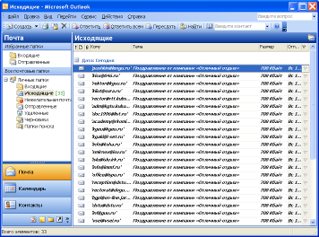 Рисунок 20 Электронные сообщения, созданные в MS Outlook
